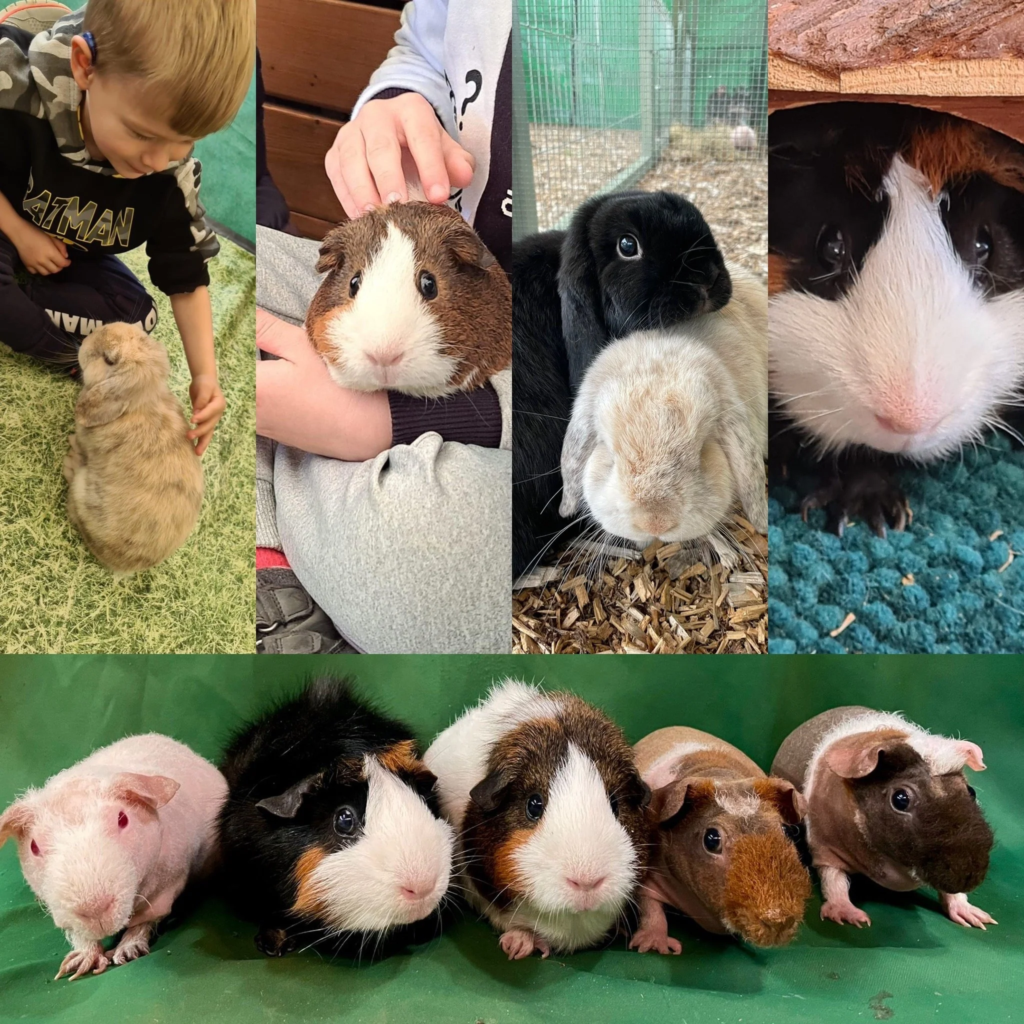 Spend 20–30 delightful minutes with our lovable rabbits and super-cuddly guinea/skinny pigs!